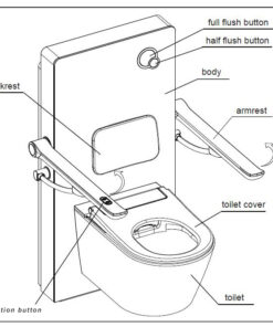 - Gemakkelijk toegankelijk ontwerp met bedieningsknoppen op de rechter armsteun om het lichaam omhoog te brengen vanaf het toilet.